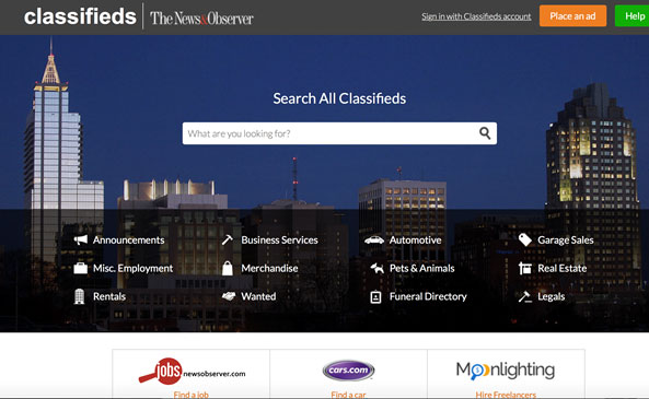 The classifieds section is an advertising section. People often try to sell things such as cars, furniture, pets, or other services in the classified section. The layout of this section is very similar to the layout found in an actual print newspaper. The classifieds section can be a little overwhelming. Try to look for key words such as "jobs," "careers," or "'employment."