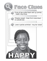 The last part of this section combines the different expressions discussed earlier in print activities and contains solution sheets for the previous Word Searches. As noted before, facial clues and feelings are very individual and these activities are meant to be a starting point for understanding how to isolate and understand what people may be expressing with their faces. Once these activities are completed it is recommended that you generalize these ideas by helping a child learn to read the facial clues and feelings on the faces of people around them.