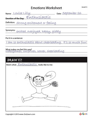 The Emotions Worksheet will help students accurately label their own emotions and the emotions of others by:
