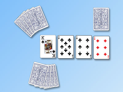 - After the players use up their hand of 4 cards, the dealer deals 4 more cards to each player and the play continues. The card layout remains the same.