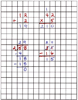 These grids are easy to print out and help to keep numbers in the correct column when adding, subtracting, multiplying and dividing. You can write the problem in colored ink or colored pencil and have the child use a regular pencil. This helps the child separate his computation from the original problem.
