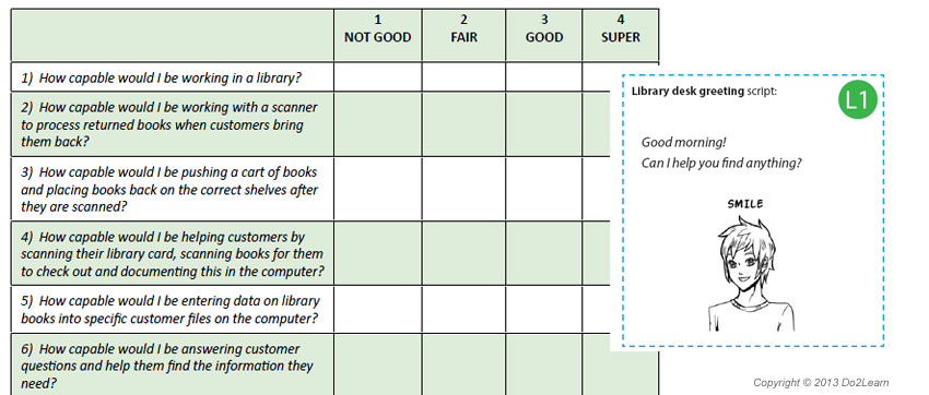 Finally, the Quick Tools provides the self assessments and videos available in the JobTIPS toolbox PRO, organized by topic for ease in finding and use. The self assessments will be the core of the career training program, helping students understand their strengths and skills and allowing instructors to individualize instruction and track their students’ progress. The videos help reinforce the concepts with role modeling of the main topic concepts. The videos can be expanded to full screen with the controls within the pop-up windows for easy classroom demonstration.