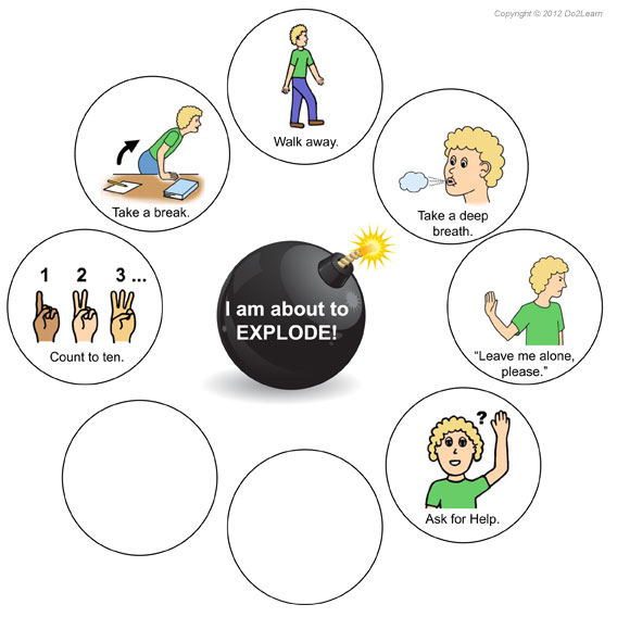 You are working with your student to help him identify coping strategies that align with increasing levels of emotional intensity. This graphic organizer provides a visual framework in which he can identify appropriate responses in order to prevent a meltdown.