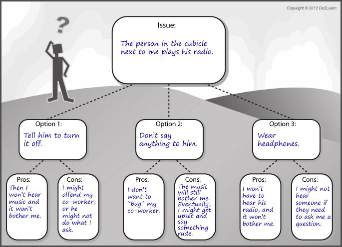Your student is faced with a real or hypothetical situation where it would be important to evaluate potential options in order to make the best choice. This graphic organizer provides a visual representation of different choices of response and their associated outcomes.