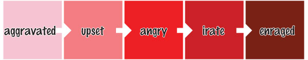 Within each basic emotion there are levels of that emotion which range from less intense on the outside to more intense in the center. For example, levels of angry are shown as: